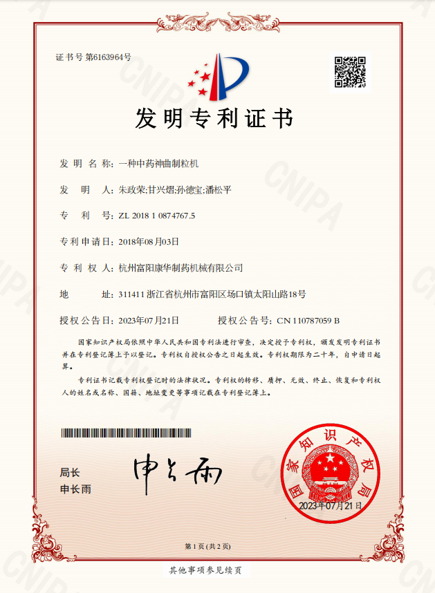 杭州富陽(yáng)康華制藥機(jī)械有限公司(初創(chuàng)于2001年, 2004年后更名為:杭州富陽(yáng)康華機(jī)械設(shè)備廠),是集產(chǎn)科研一體化的中藥材前處理及飲片加工設(shè)備制造企業(yè)。公司秉承以產(chǎn)品質(zhì)量為基礎(chǔ)、客戶服務(wù)為向?qū)А⒖蒲袆?chuàng)新為后勁的宗旨,在企業(yè)高速發(fā)展的同時(shí),著力打造新產(chǎn)品研發(fā)中心,以開發(fā)現(xiàn)代、新穎設(shè)備為重任,確保產(chǎn)品立于行業(yè)先進(jìn)行列,企業(yè)已擁有70余項(xiàng)專利...